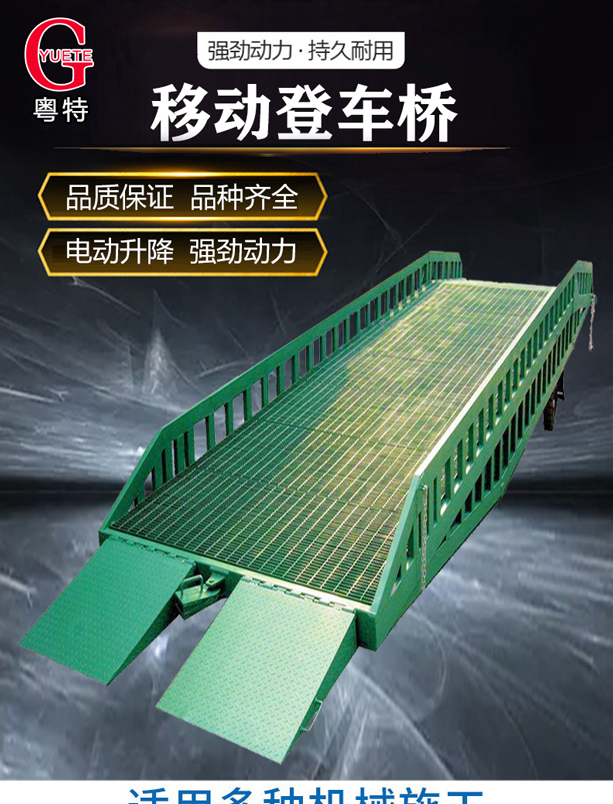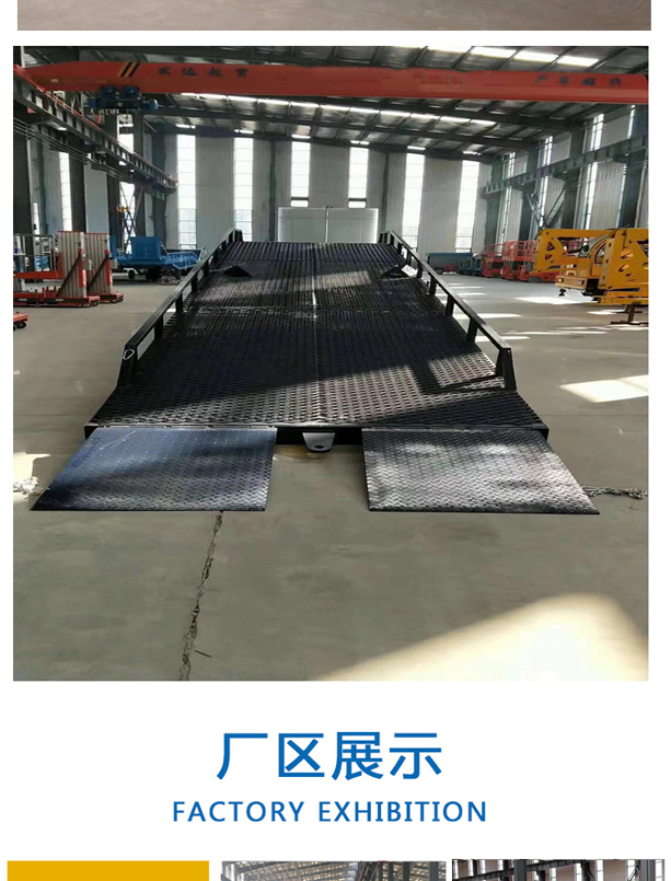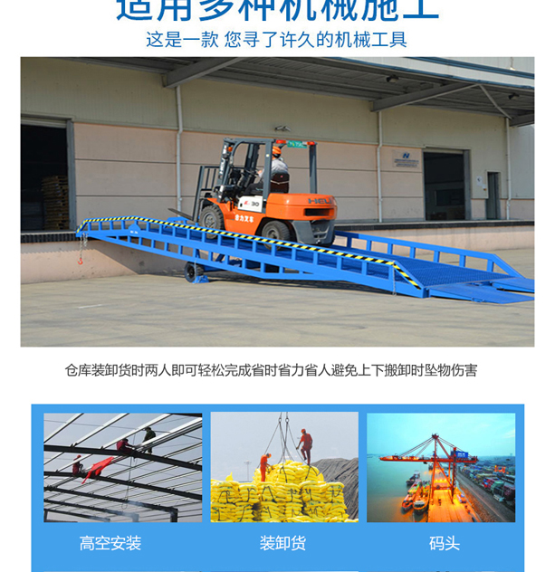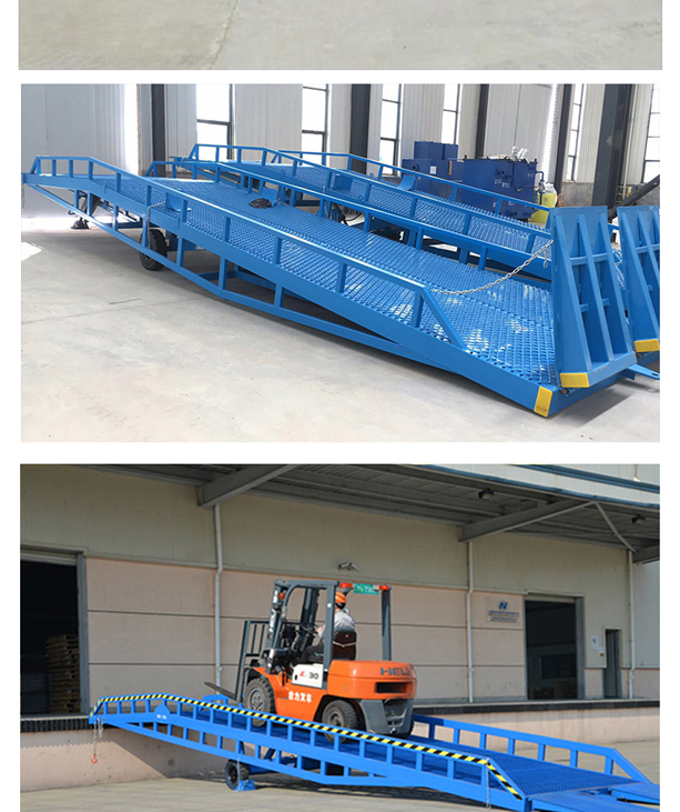 固定式登车桥广泛应用于码头、站台、仓库等地。电动登车桥主要作用是货台与车辆之间搭起的一座桥。使叉车便利的行使达到装卸货的目的,该设备一端与货台一样高,另一段搭在车厢后缘上,并能根据不同的车型及装车过程中车厢的变化,自动调节高度。